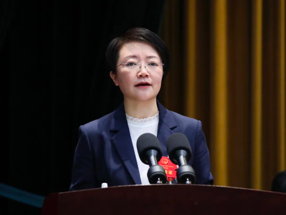 △區(qū)委副書記、代區(qū)長(zhǎng)吳瑕作政府工作報(bào)告。